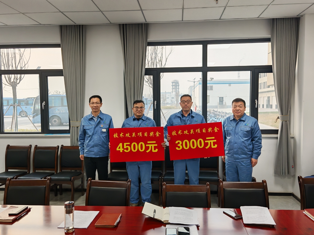 為表彰先進、樹立榜樣,進一步激發(fā)全體員工創(chuàng)新創(chuàng)效的積極性與主動性,12月19日下午,公司對在自主攻關優(yōu)化項目中取得突出成績的孔祥昶項目團隊和李征徐項目團隊進行表彰。公司黨委書記、董事長姜自成,公司總經(jīng)理、黨委副書記、副董事長延立強為其頒發(fā)了技術(shù)攻關項目獎金。