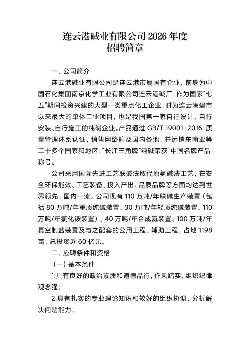 連云港堿業(yè)有限公司2026年度招聘簡(jiǎn)章