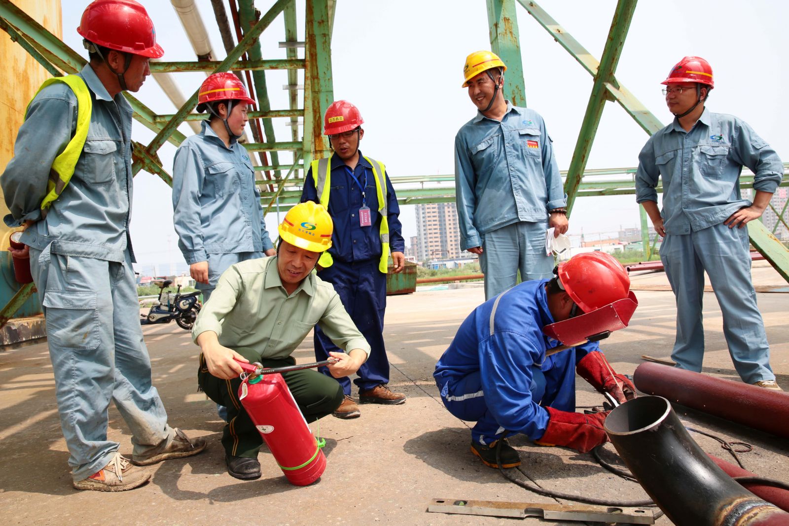 7月24日,公司安全生產(chǎn)大檢查人員冒著34度的高溫,分兩組對氨庫、氣瓶庫、柴油庫、酸堿庫以及露天高溫鋼材切割現(xiàn)場等場所進行安全隱患大排查,對發(fā)現(xiàn)的問題做到即查即改,確保高溫天氣安全生產(chǎn)。