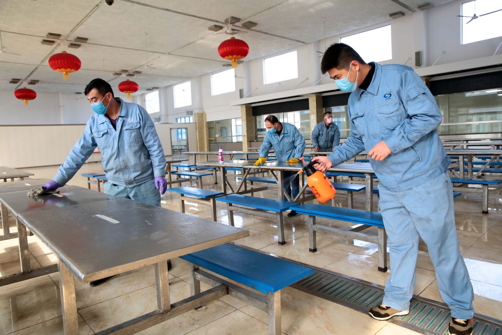 公司內(nèi)部的事宜由副總經(jīng)理焦旺盛統(tǒng)一負(fù)責(zé)安排落實,嚴(yán)抓內(nèi)部管控。健康安環(huán)部負(fù)責(zé)布置落實各班組建立職工體溫臺帳,發(fā)現(xiàn)異常情況及時報告。加強檢查頻率,建立日報告制度,負(fù)責(zé)廢舊口罩回收處理;對接供應(yīng)部做好應(yīng)急防護物資的備、采工作,每天統(tǒng)計好公司的應(yīng)急物資并按要求上報上級部門;安排好人員的測溫工作。物管中心定時對食堂、浴室等公共場所消毒;保衛(wèi)部加強門禁管理,做好進入公司人員的監(jiān)管,非我公司職工未經(jīng)批準(zhǔn)一律暫停進入公司;同時負(fù)責(zé)口罩的發(fā)放;設(shè)備部、技術(shù)部通知公司外委承包商暫停進廠作業(yè);人力資源部負(fù)責(zé)通知勞務(wù)承包商,除從事正常倒班的外用工外,其余一律暫停進廠作業(yè);黨群部負(fù)責(zé)通過公司內(nèi)網(wǎng)、微信公眾號等宣傳平臺加大防控工作的正面宣傳和引導(dǎo)的力度,多宣傳一些防控知識,多宣傳防控期間公司一些典型照片、事跡,同時向上級主管部門報道;辦公室做好節(jié)假日延期的相關(guān)通知與安排,及時傳達(dá)上級精神,協(xié)調(diào)、配合好公司內(nèi)部各部門、車間做好防控的相關(guān)工作。