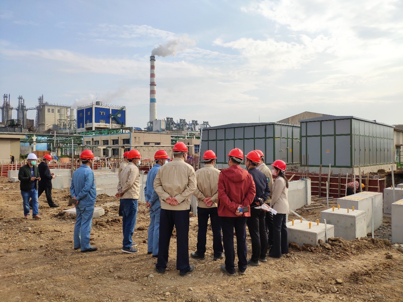 程真何一行人員在堿業(yè)公司董事長(zhǎng)張衛(wèi)民的帶領(lǐng)下實(shí)地考察了外電網(wǎng)系統(tǒng)供電增容改造施工狀況,并就施工質(zhì)量和進(jìn)度提出了意見和建議。