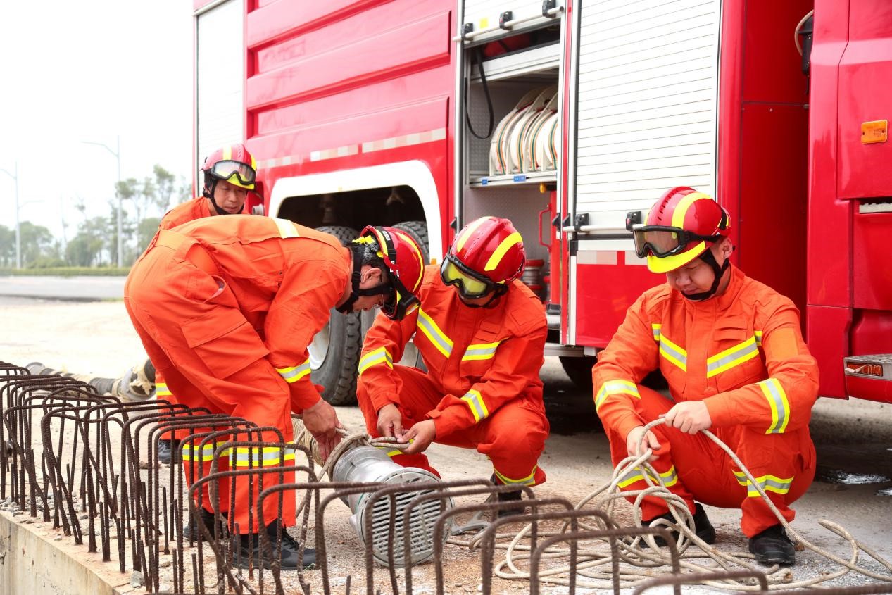 公司成立防汛搶險小分隊,由消防隊人員組成,在緊急情況下,確保立即投入到搶險工作中。同時做好對車輛、破拆工具等現(xiàn)有搶險救援器材徹底檢查保養(yǎng)工作,時刻處于備用狀態(tài),隨時具備防汛能力。消防隊根據(jù)天氣情況,進行搶險應(yīng)急預(yù)案演練,利用快速結(jié)繩 “拼刺刀、端盤子、左壓右右壓左、剪刀手”等四種方法訓(xùn)練,提升消防隊救援能力,全方面做好應(yīng)急準(zhǔn)備。