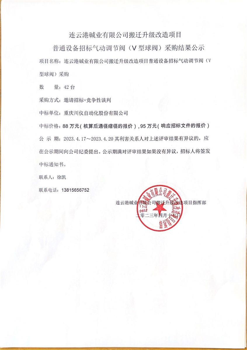 氣動(dòng)調(diào)節(jié)閥(V型球閥)采購(gòu)結(jié)果公示