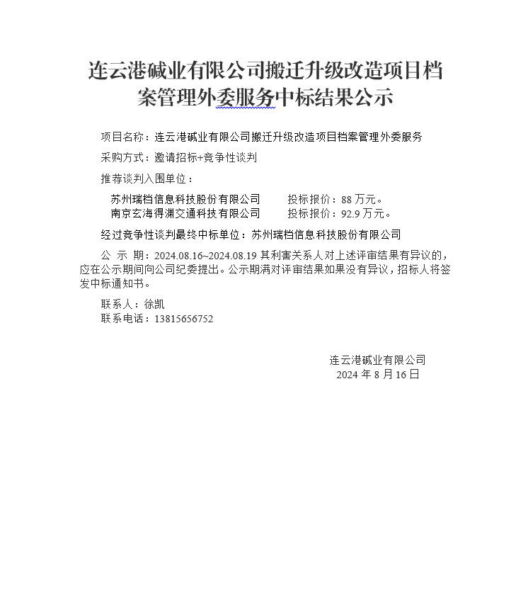 搬遷升級(jí)改造項(xiàng)目檔案管理外委服務(wù)中標(biāo)結(jié)果公示