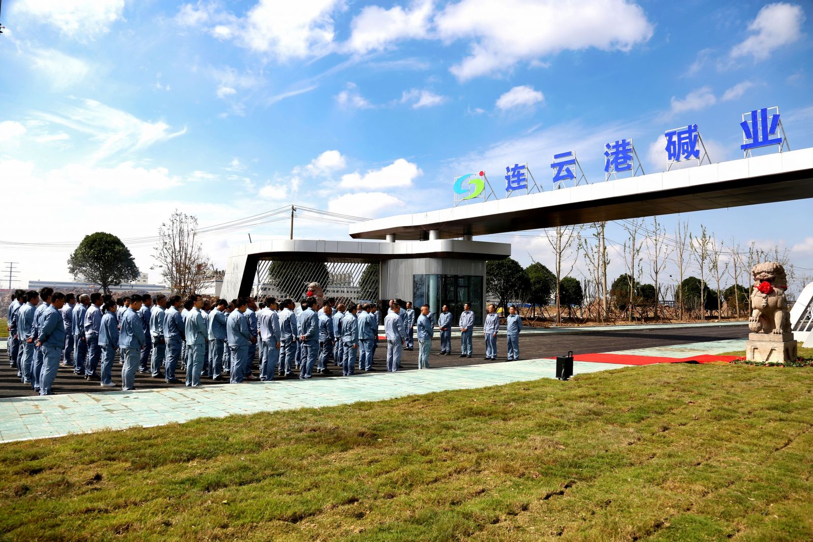 儀式上,姜自成、延立強(qiáng)為廠前區(qū)石獅揭幕。據(jù)悉,這一對石獅與老堿廠風(fēng)雨兼程近三十年,見證了老堿廠的興起、輝煌和衰落,是堿業(yè)公司歷史傳承的一分子,是堿業(yè)公司企業(yè)文化的一分子,是全體堿業(yè)人深刻記憶的一分子。如今,這對石獅落成在全新的堿業(yè)公司,必然成為堿業(yè)公司新發(fā)展的守護(hù)者,必然成為堿業(yè)公司新篇章的見證者,必然成為全體堿業(yè)人新精神的守望者。它們時(shí)刻提醒著我們不忘初心、銘記歷史,同時(shí)也鼓舞著我們勇往直前、開拓創(chuàng)新。
