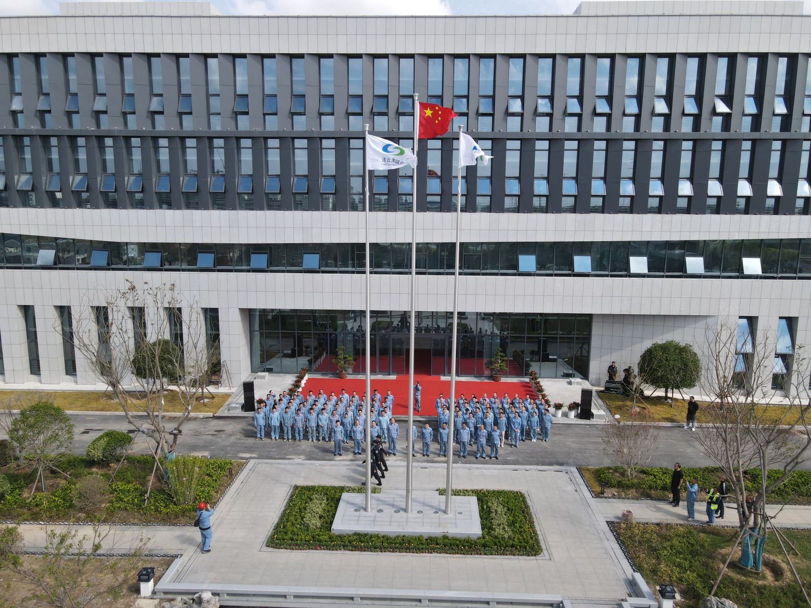 儀式伊始,公司在綜合樓前舉行莊嚴(yán)肅穆的升旗儀式,3名護(hù)旗手邁著鏗鏘有力的步伐,莊重地將國旗護(hù)送至升旗臺。伴隨著雄壯的《義勇軍進(jìn)行曲》,五星紅旗冉冉升起。