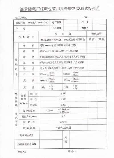 5.6 其他主要資格要求:具有合法有效的生產(chǎn)許可資質(zhì),企業(yè)制度完善、質(zhì)量管理規(guī)范,具有完整的拉絲、織布、縫紉、檢測等生產(chǎn)線,注冊資金不少于500萬元(人民幣)。食品包裝袋投標(biāo)人應(yīng)具備食用包裝物生產(chǎn)許可資質(zhì),并提供第三方檢測報(bào)告。投標(biāo)人必須送樣品袋先經(jīng)我公司質(zhì)檢部門檢測合格(2018年10月20日之前送到連云港堿業(yè)有限公司供應(yīng)部,原招標(biāo)人供應(yīng)商不需送樣品袋)。符合法律、法規(guī)規(guī)定的其他條件。