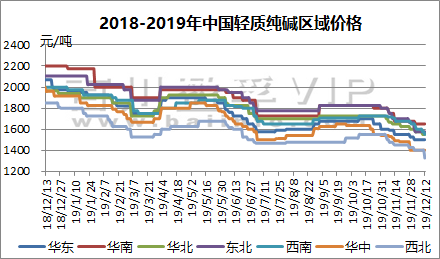 百川資訊及純堿公平貿(mào)易工作站:(2019.12.6-12.12)輕質(zhì)純堿出廠價(jià)格走勢(shì)圖